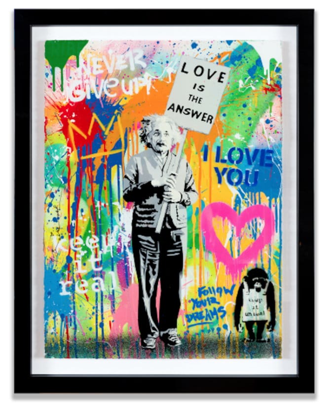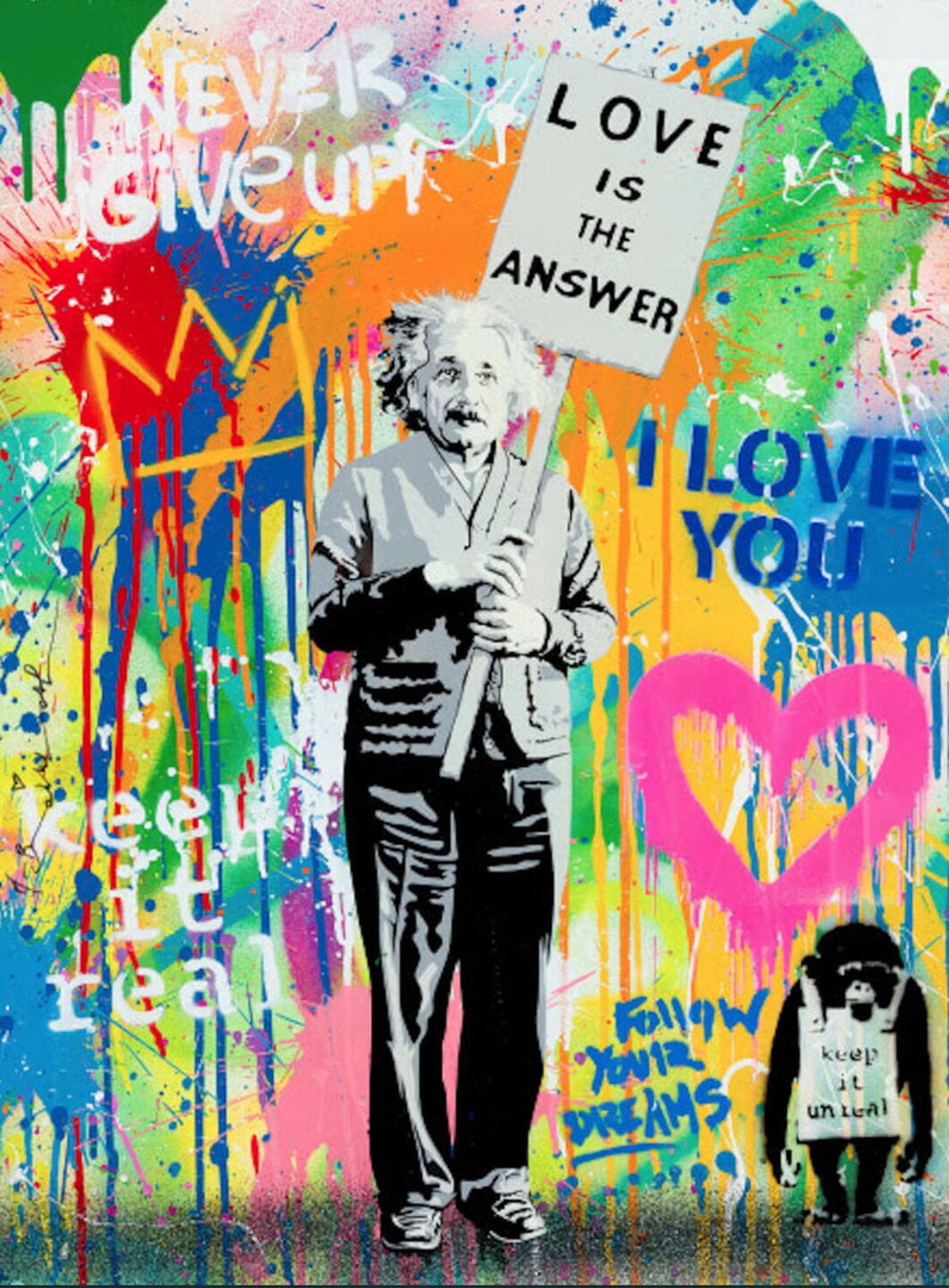 “Einstein” 2023 – Iconic street art work by Mr. Brainwash, screen print on glass