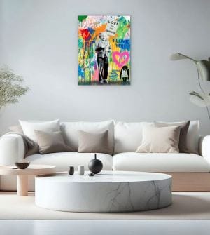 In this vibrant screen print, Mr. Brainwash blends the captivating essence of Pop Art with powerful messages to create a tapestry of vivid colors and compelling text. The artwork is a symphony of emotions that fosters resilience, celebrates love, and inspires the viewer's dreams. It aims to touch the mind and heart, creating an atmosphere of hopeful dynamism wherever it is displayed.