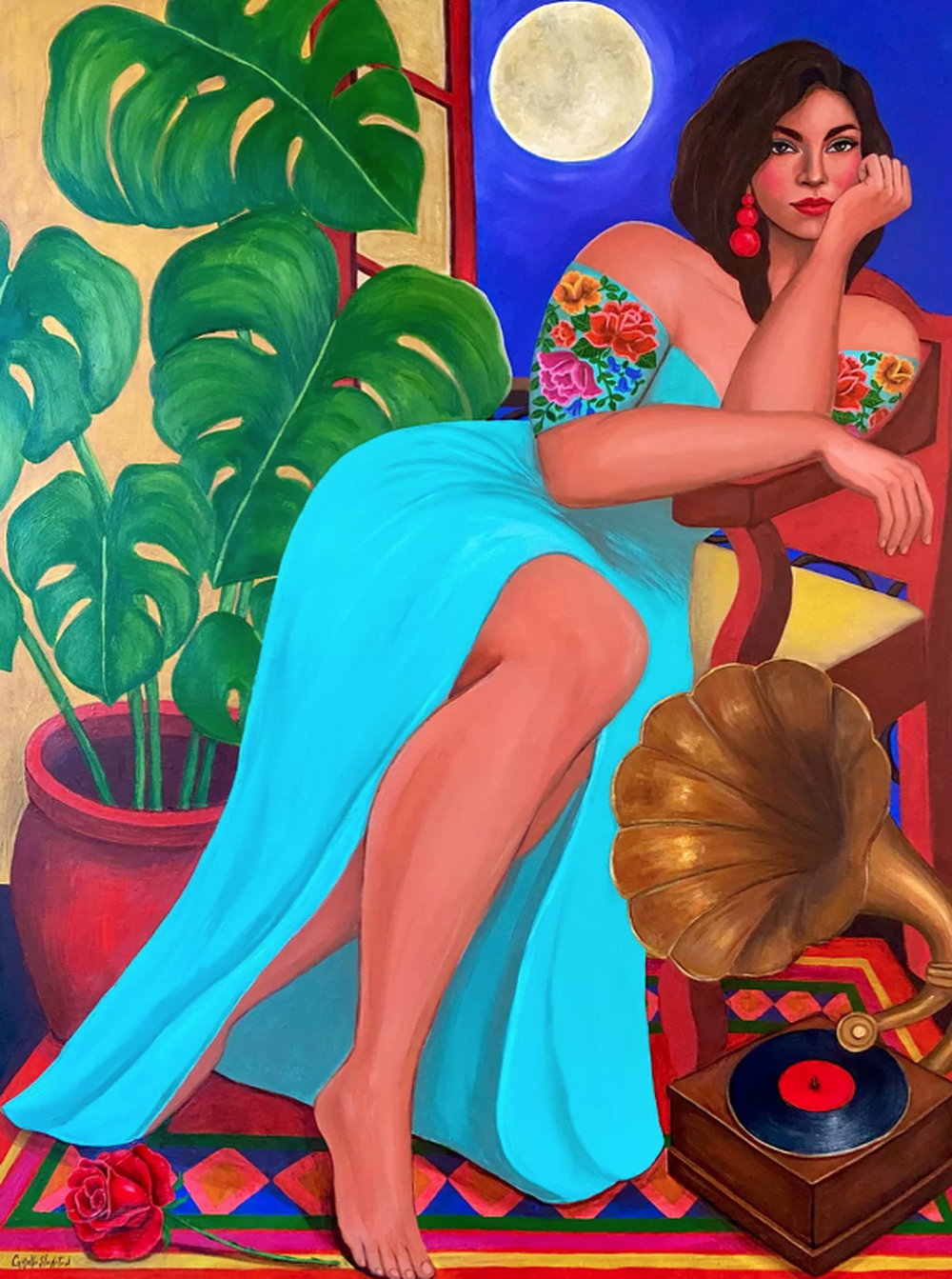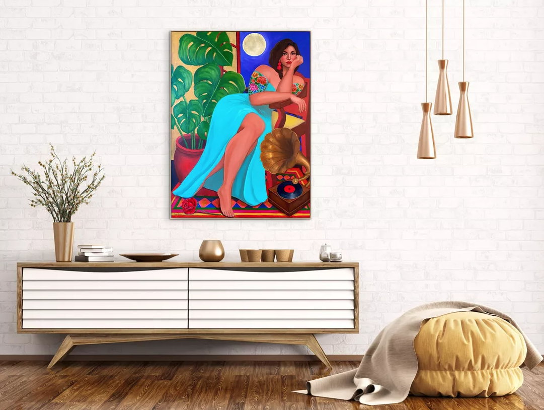 Gisella Stapleton wurde in Lima, Peru, geboren und verwendet verschiedene Medien und künstlerische Materialien, um den Reichtum der Folklore, der Symbolik und der Kunst der Anden malerisch zum Ausdruck zu bringen. In einer Methode, die Tradition mit Moderne verbindet, bringt sie uns farbintensive Folk Art aus Lateinamerika in die Welt. Elemente der Volkskunst, des Fauvismus und der sakralen Kunst vermischen sich mit Realismus und Abstraktion, um den einzigartigen Stil zu erzeugen. Die peruanische Malerin zeigt in ihren Werken südamerikanische Ikonen, Naturszenen, indigene Folklore und gewöhnliche Frauen. Nach ihrem Umzug von ihrer Heimat Peru nach Spanien begann Gisella ihre Arbeiten an der Universität von Valladolid auszustellen, gefolgt von einer Reihe von Ausstellungen in verschiedenen Kulturzentren. Kurz nach ihrem Umzug nach London begann Gisella, ihre Arbeiten in zahlreichen Galerien auszustellen, vom Battersea Arts Centre in London über das Ronda Barcelona Cultural Centre in Barcelona bis hin zur HERSTORY Performance Show in San Diego, CA. Das wachsende Bewusstsein für unterworfene Völker, darunter Frauen und indigene Gruppen, ist ein zentrales Thema in Gisellas Kunstwerken, die sich der Bedeutung von Kunst als Werkzeug für gesellschaftlichen Wandel bewusst sind. Gisella Stapleton wurde kürzlich als eine von 30 lateinamerikanischen Künstlern für die Ausstellung des VIA Arts Prize in Großbritannien ausgewählt. Sie lebt und kreiert jetzt von ihrem Studio in London aus.