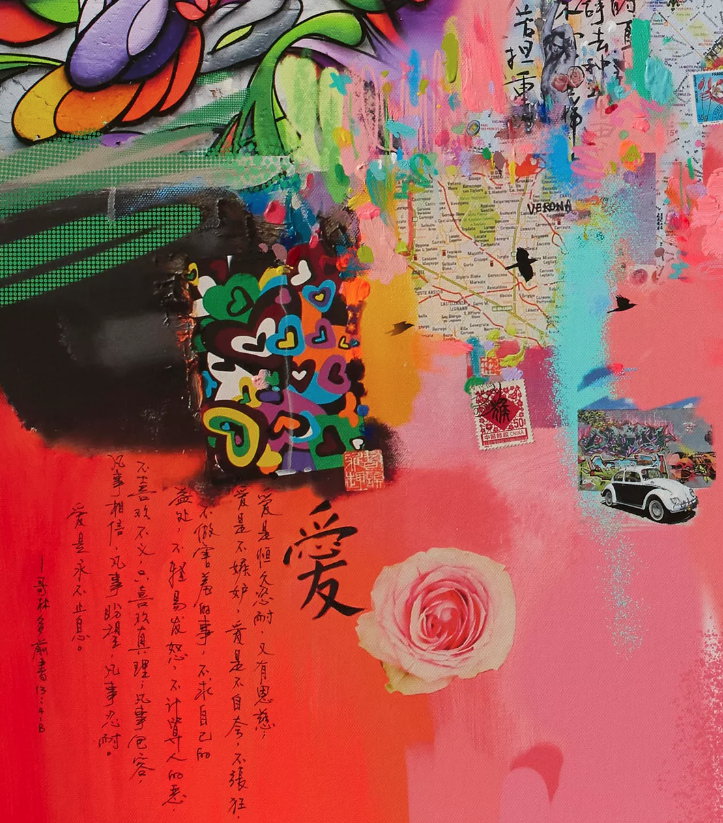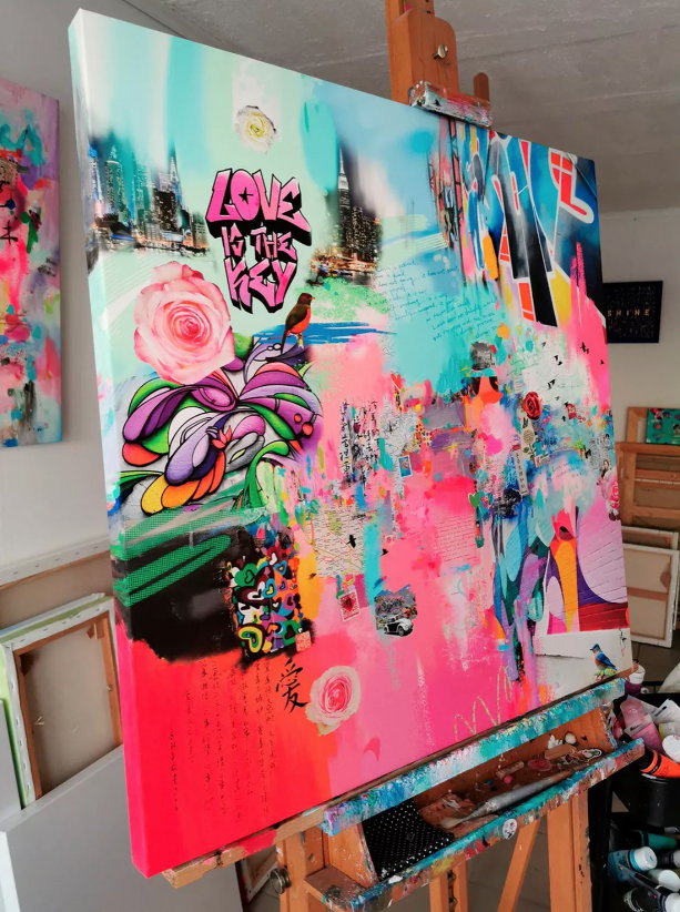 Abstraktes Mixed Media Gemälde „Love is the key II“ (2025) von Xiaoyang Galas