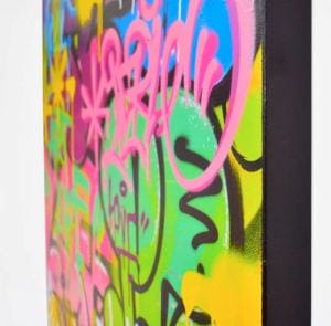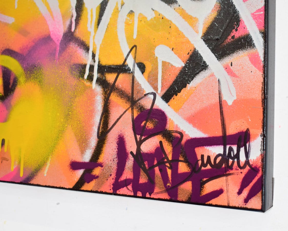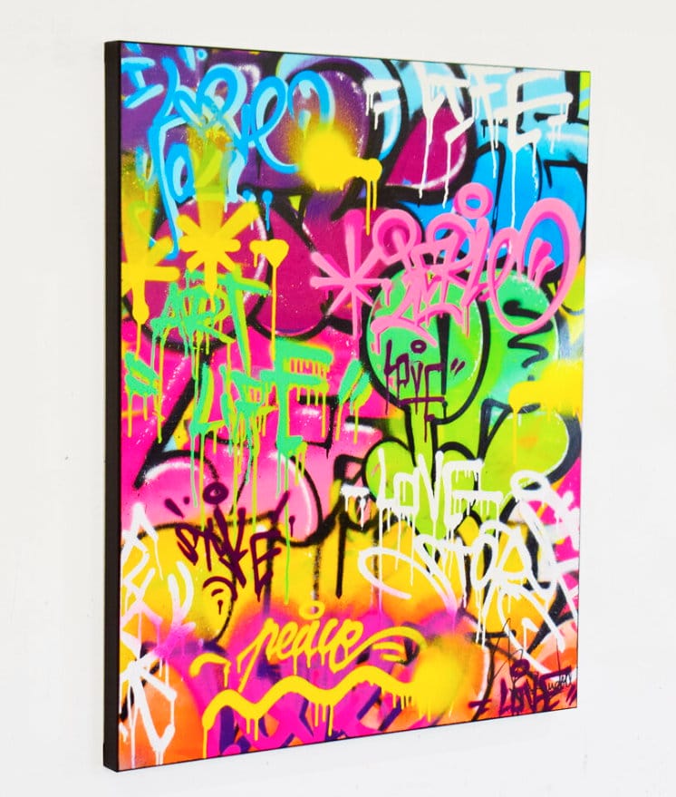 Dieses Graffiti-Gemälde ist ein originales handgemaltes Werk von Vincent Bardou. Leinwand auf einem 3D-Rahmen montiert