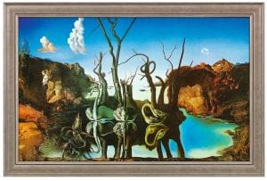 Bild „Schwäne spiegeln Elefanten wider“ (1937), gerahmt