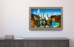 Der Meister des Surrealismus gibt hier zwei seiner favorisierten Tiere eine Bühne: Gespiegelte Schwäne gleichen einer Herde Elefanten. Durch reines Glück konnte dieses Gemälde 1944 aus Dalís Wohnung in Paris gerettet werden.