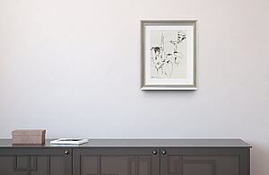 Motivgröße 31,5 x 24 cm (H/B). Gerahmt in silberner Massivholzleiste mit Schrägschnittpassepartout, verglast. Format 46 x 37,5 cm (H/B). Einzelstück.