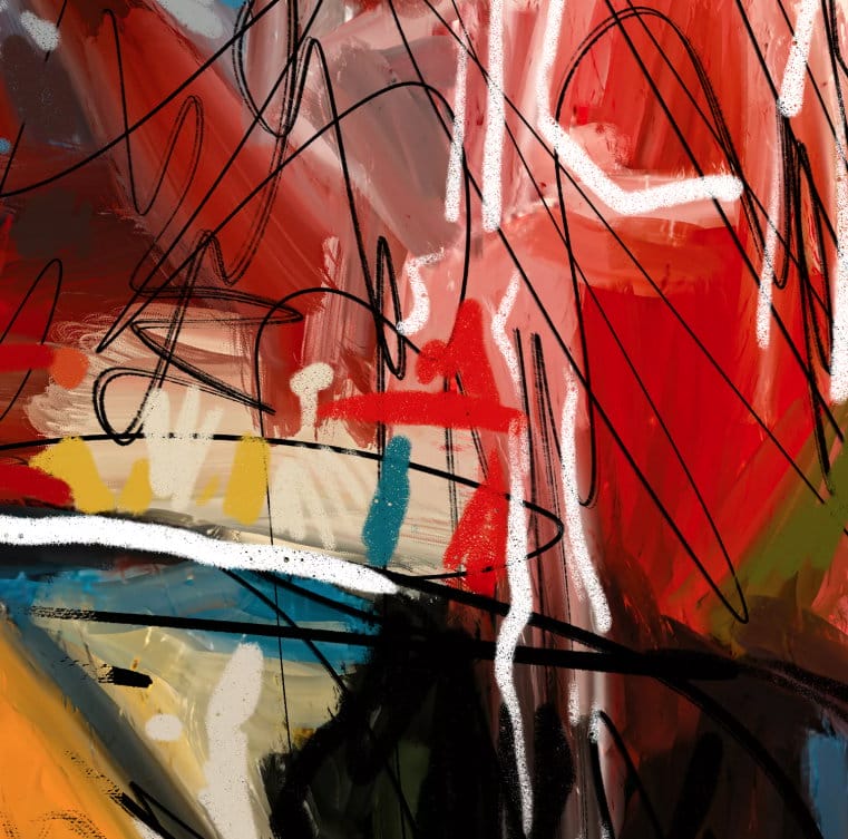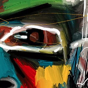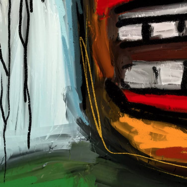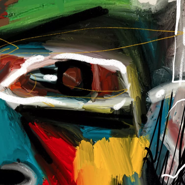 Es ist eine Hommage an Jean Michel Basquiat. Das Werk ist digital und analog gemalt und ist ein Mix aus Neoexpressionismus und Digital Art. Es ist gedruckt auf hochwertiger Galerieleinwand mit sehr langlebigen Pigmenten und zum Schluss mit viel Acrylfarbe bemalt und gefirnisst.
