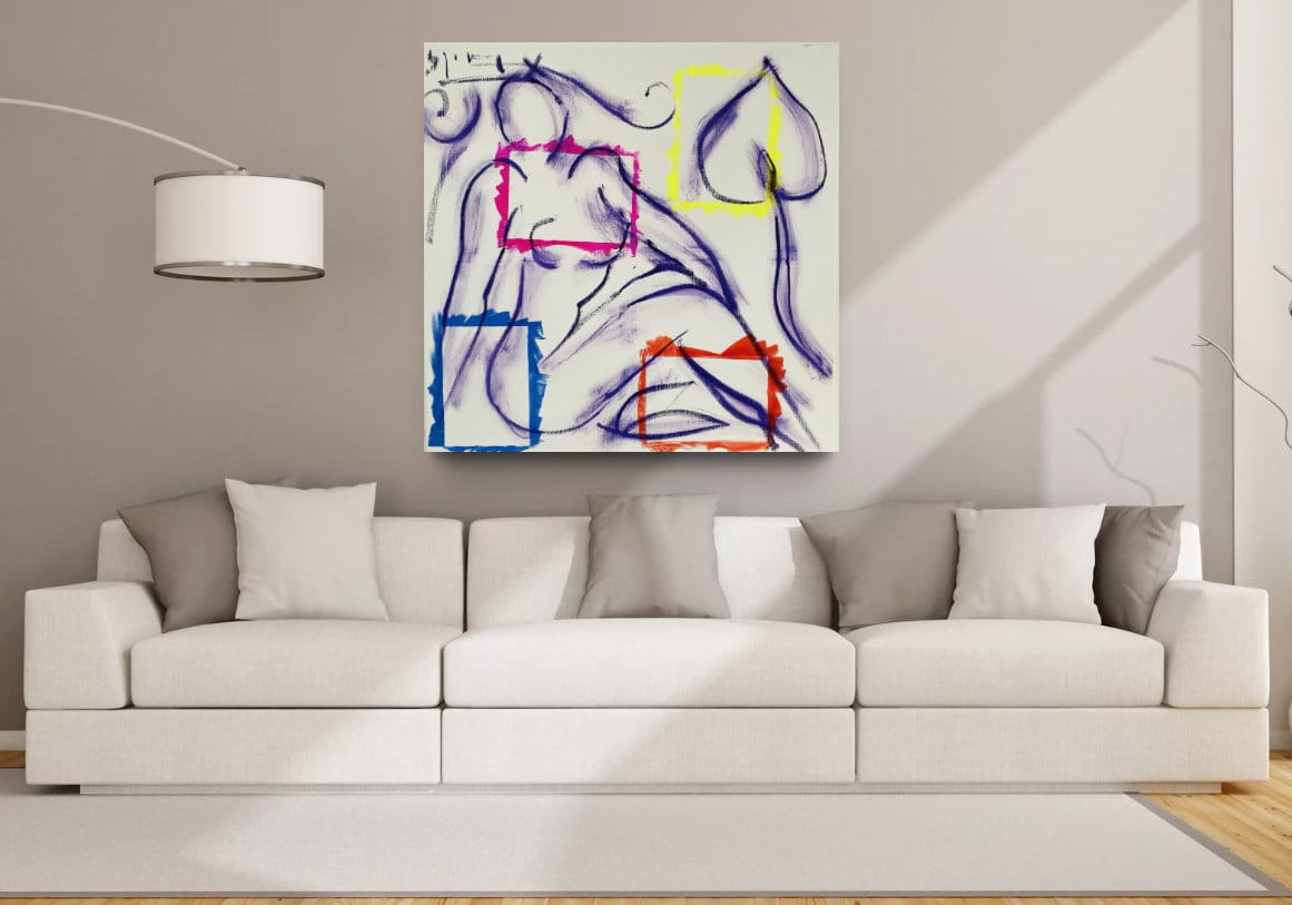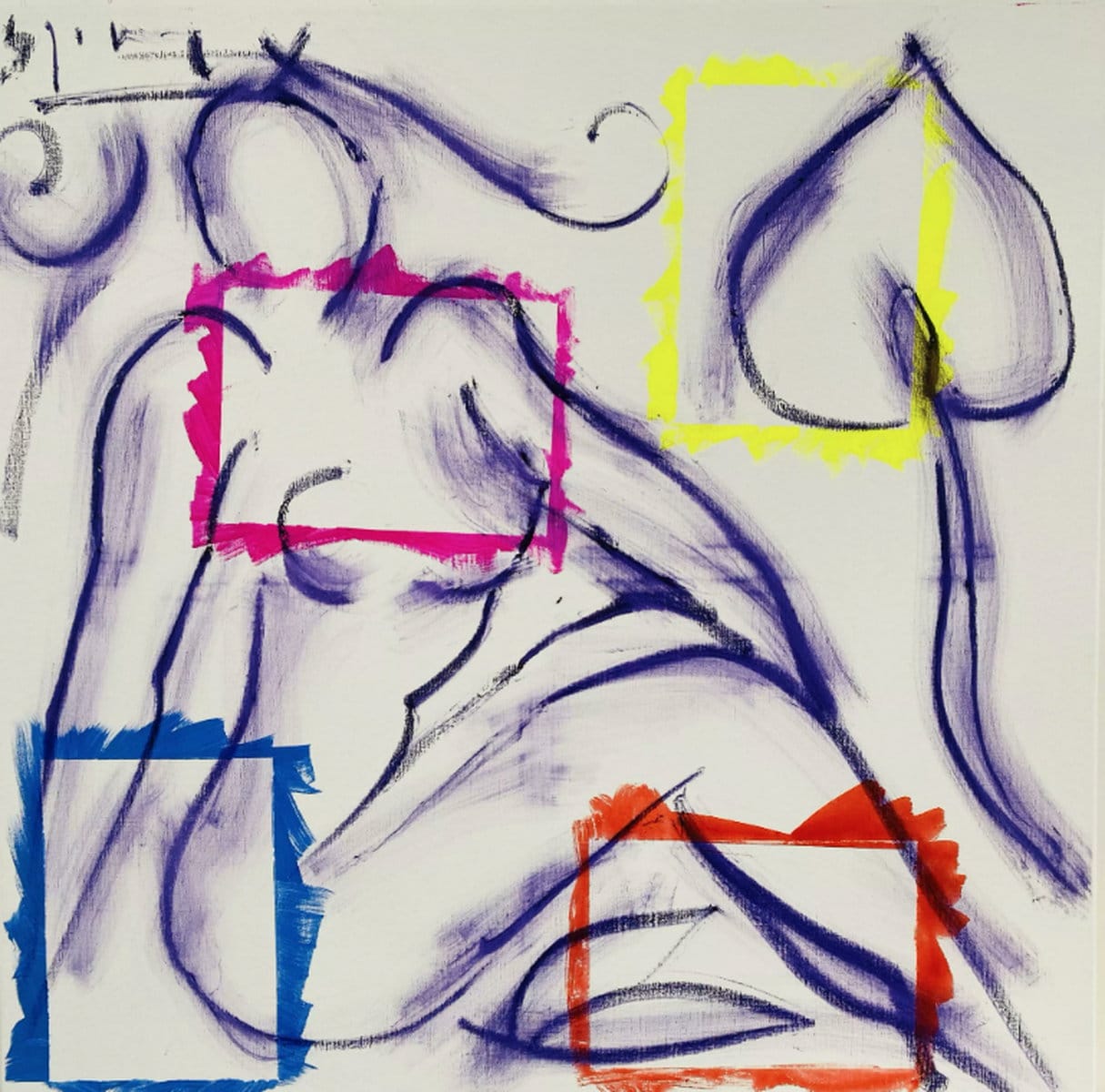 Abstrakte Aktzeichnung “Pikdame” (2023) von Stefan Szczesny, Acryl + Ölkreide auf Leinwand