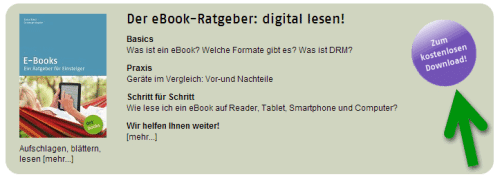 Bei dotbooks ist man sich der Tatsache bewusst, dass das „elektronische Lesen“ im bundesdeutschen Alltag noch nicht zu den Selbstverständlichkeiten gehört. Deshalb wird der potenzielle künftige eBook-Leser auch in dieser Beziehung gleich an die Hand genommen: Auf dotbooks finden diese auch gleich eine Informationsseite über die verschiedenen Formen der eBook-Reader.